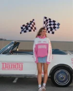 Dandy racing heart oversized lux hoodie in pink